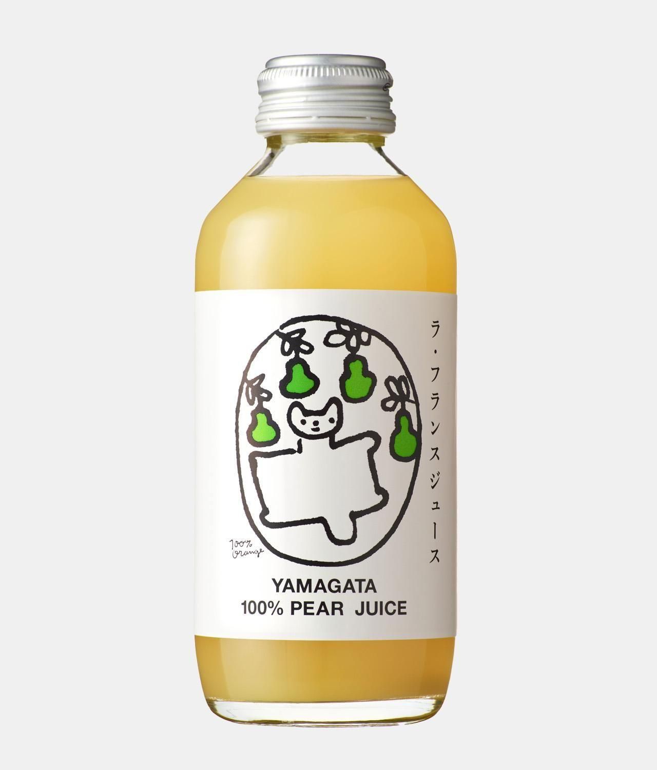 フレンズ オブ リンゴリらっぱ、契約農家の特別栽培基準果実使用のラフランスジュース。ラ・フランスの芳醇な香りと濃厚な味をそのまま搾ったジュースです。